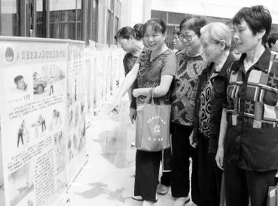 居民们正在观看人防宣传栏