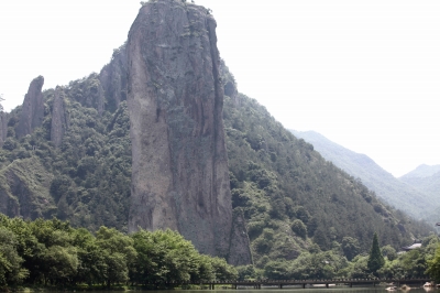 进入仙都核心景区,只见拔地而起的鼎湖峰傲然屹立好溪畔。据了解,这鼎湖峰被誉为“天下第一笋”,高达170.8米,约有60层楼高,是我国火山岩孤峰中的典型代表。鼎湖峰为气泡凝灰岩,由火山间歇喷发的岩浆和地壳急剧变迁而成,其气势之磅礴,形态之奇特,令人叹为观止。