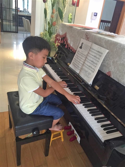 就这样,贺哲人开始了辛苦的“琴童”生活。“有时候遇到天气不好,也要去老师家学琴,每次练琴一练就要一个小时。”胡女士说,有时候看着孩子那么辛苦练习,她有些自责,“弹得好了会鼓励他,但是弹得不好也要批评,觉得自己太狠心了。”