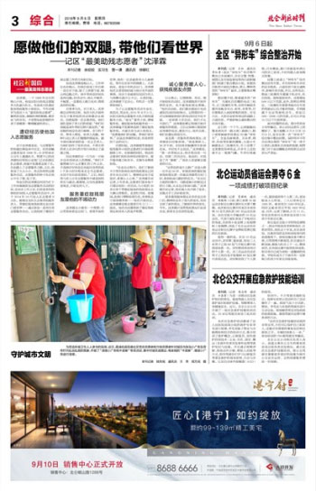 为了让志愿服务活动专业化、规范化、常态化,2015年4月5日,区阳光助残志愿服务大队开始组建服务小组,“星宝”服务小组、聋哑服务组、重症肢体残疾服务组……沈泽霖毫不犹豫地选择了重症肢残服务组,并被任命为该小组组长。“我想做他们的双腿,带他们看世界。”这是沈泽霖的初衷,也是他坚持下去的动力。