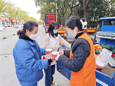 “师傅,来一碗热乎的宁波汤圆,祝你们元宵节快乐。”在榭西工业园区,一个个红色身影奔走着,形成了一道靓丽的风景线,志愿者组成两个暖心小分队,分别骑着三轮车沿途吆喝,虽然天气寒冷,但是内心却十分火热,这次活动共为100余位集卡司机及新大榭人送上了暖心汤圆,他们洋溢着幸福的笑容,纷纷向志愿者表示了感谢。
