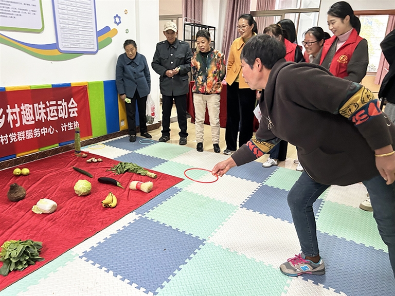 4月25日,春晓街道三山村党群服务中心举办了一场“迎亚运 享健康 爱永续”老年趣味运动会。运动会设有“豆子夹夹乐”“麻将叠叠高”“果蔬圈圈乐”3个趣味性较强的项目,吸引了周边许多老人报名参与。