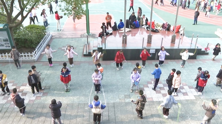 3月26日上午8时20分,华山小学操场上的铃声响起,“花式大课间”开始,学生们整齐排开,井然有序地开始每日例行的跑操活动。热身结束,各个班级的学生们按划定区域分散活动,趣味跳绳、排球、篮球、乒乓球、跳长绳……运动的口号声与学生们的笑声相互交织,一派朝气蓬勃的景象。