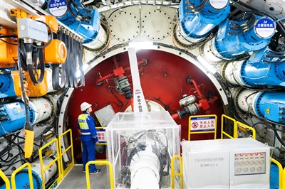 目前,“甬舟号”盾构机刚经历完第四次软硬地层交替变化,为提高盾构机的适应性、可靠性和高效性,中铁十四局项目团队在地层转换前主动停机,由专业的机械师对盾构机进行预防性维保,并进行抽刀检查,及时更换磨损刀具,确保“甬舟号”盾构机设备完好率始终保持在98%以上。“不同地层条件下,盾构机的掘进速度存在显著差异。我们依托海量的掘进数据和丰富的施工经验,提前计算好相应地层切口压力,精准设置盾构掘进各项控制参数,为盾构掘进提供数据支持。”工作人员表示。