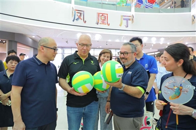 本刊讯(记者 王瑛琢 范晓磊 朱霄逸 通讯员 汤丽莲)8月1日,恰逢“非遗好物国潮焕新”2025北仑非遗消夏购物生活周,国际排球联合会(FIVB)主席法比奥·阿泽维多(Fabio Azevedo)及夫人一行造访北仑银泰城,深度体验了港城北仑独特的排球文化与非遗魅力。